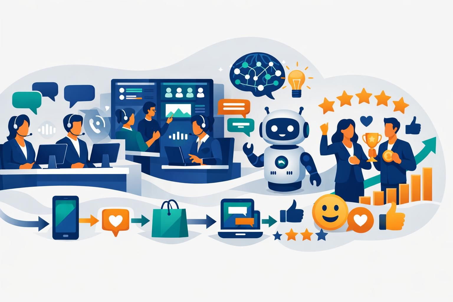 Les PME ressentiront d’abord l’impact de l’Intelligence artificielle contextuelle (réduction de la répétition), du self-service capable de résoudre, et de l’Omnicanal multimodal (voix + chat + pièces visuelles). Ce trio améliore rapidement la Satisfaction client tout en réduisant la charge opérationnelle.